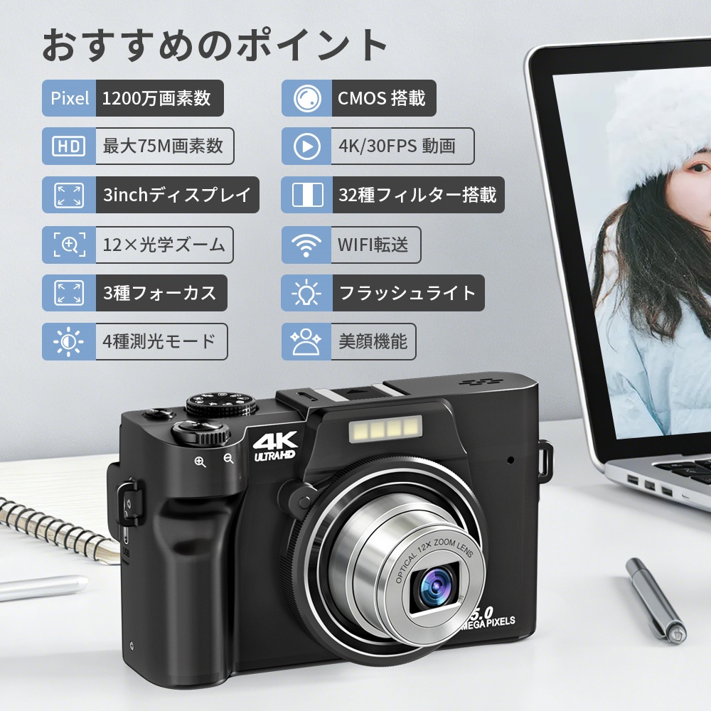 カメラ レトロ デジタルカメラ 光学ズーム 伸縮レンズ 12倍光学 ズームコンパクト デジタル カメラ 4K 8K解像度 5K解像度 デジカメ WIFI機能 16Xデジタルズーム 18Xズーム VLOGカメラ YouTubeカメラ Webカメラ コンパクトデジタルカメラ Vloggingカメラ ウェブカメラ フォーカスデジタルカメラ モードダイヤル 5Kデジタルカメラ キッズカメラ オートフォーカス 充電式 自撮り8800万画素 3.0インチ画面 日本製センサー搭載 手振れ補正 64GBマイクロSDカード付き 光学ファインダー 連写 軽量 オシャレ おしゃれ ブラック ホワイト ピンク クリスマス プレゼント ギフト 旅行 イベント 修学旅行 卒業式 入学式 入学祝い 入園祝い 学生 初心者向け 父の日 母の日 - 楽天での商品説明(M.M.P.)