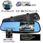 ドライブレコーダー ルームミラー型 2カメラ Wカメラ 液晶 1080P 上書き 簡単設置 車 常時録画 あおり運転