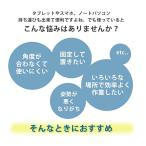 またスタンドを使用することで、タブレットの設置面に空間ができ通気性が良くなり熱がこもるのを防ぎます。