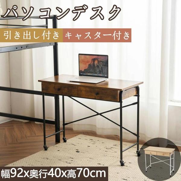 - パソコンデスク デスク 書斎デスク キャスター付き 引き出し付き pcデスク コンパクト テーブル 机 学習デスク 学習机 勉強机 収納 一人暮らし おしゃれ 移動便利 新生活応援 耐荷重22kg
