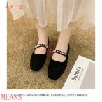パンプス 歩きやすい ベルトパンプス スクエアトゥ パンプス フィット感 ぺったんこパンプス 痛くない 婦人靴 パール スクエアトゥパンプス レトロ