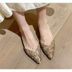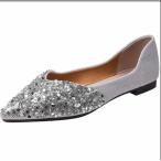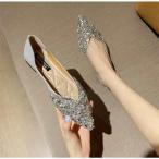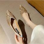 パンプス 結婚式 靴 ブライダルシューズ レディース ローヒール 痛くない フラットパンプス ポインテッドトゥ べたんこ 疲れにくい キラ