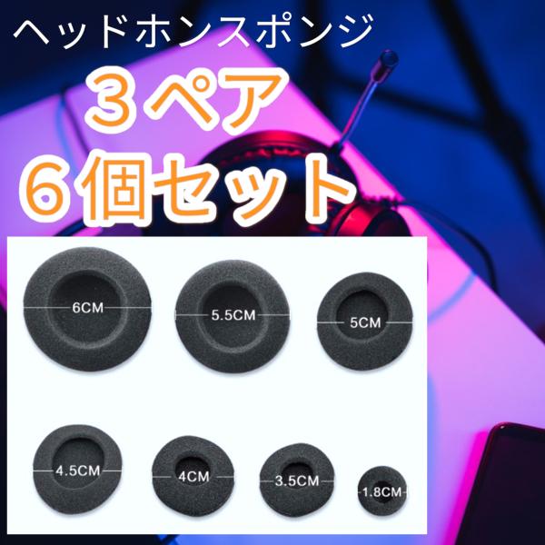 ヘッドホン 耳 スポンジ 3ペア 6枚 交換用 イヤーパッド カバー スポンジ ヘッドフォン イヤホン 耳あて クッション