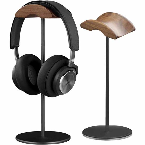 ヘッドホンスタンド おしゃれ 天然木 高級ブラックウォールナット+アルミニウム合金仕様 ヘッドホン スタンド ヘッドホンハンガー テレワーク ゲーミング