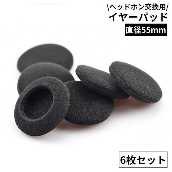 ヘッドホン交換用 イヤーパッド 6枚セット 55mm 両耳 カバー クッション スポンジ イヤホン ヘッドフォン ブラック 黒色
