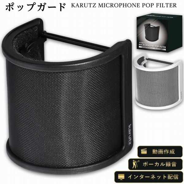 ポップガード マイクフィルタノイズ防止 プロ監修 U型 カゴ式 ポップブロッカー ポップフィルター コンパクト 軽量 KARUTZ 2021年版 ブラック シルバー