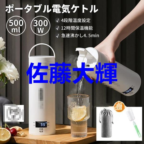 ポータブル電気ケトル 電気水筒 電気ケトル 電気ポット300ml 500ml小型 ミニ 電気ボトル ボトル 魔法瓶ポット ポータブルケトル ワンプッシュ オープン