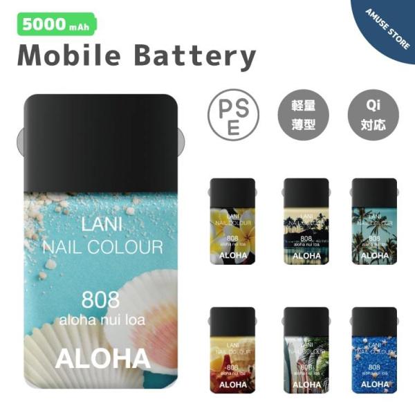 モバイルバッテリー 5000mAh 軽量 大容量 薄型 iPhone android スマホ iPad 対応 ハワイアン ALOHA アロハ 夏 SUMMER かわいい