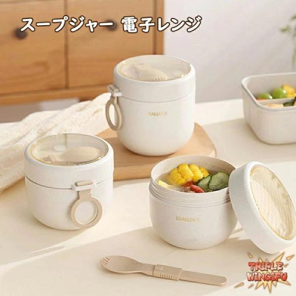 - ランチスープジャー 電子レンジ 透明フタ内蔵 スープ缶 800mlお手入れ簡単 600ml 電子レンジ対応 カトラリー便利で衛生 PP