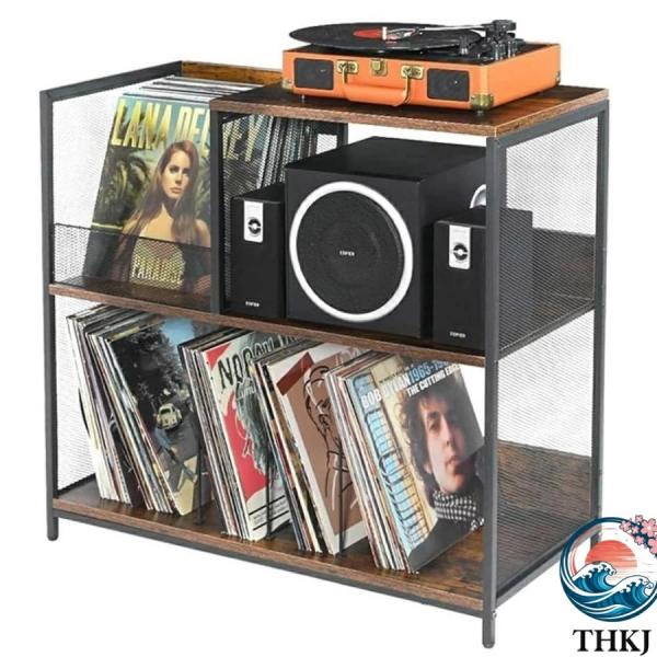レコードプレーヤースタンド レコードラック レコードプレーヤーテーブル THKJ 大容量収納 レコード300枚収納可能 リビングルーム 寝室 オ 省スペース