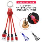 充電ケーブル 3in1 ストラップ iPhone microUSB タイプB Android USBケーブル コンパクト キーリング ギター型 LEDライト 同時充電 スマホ PC 急速充電