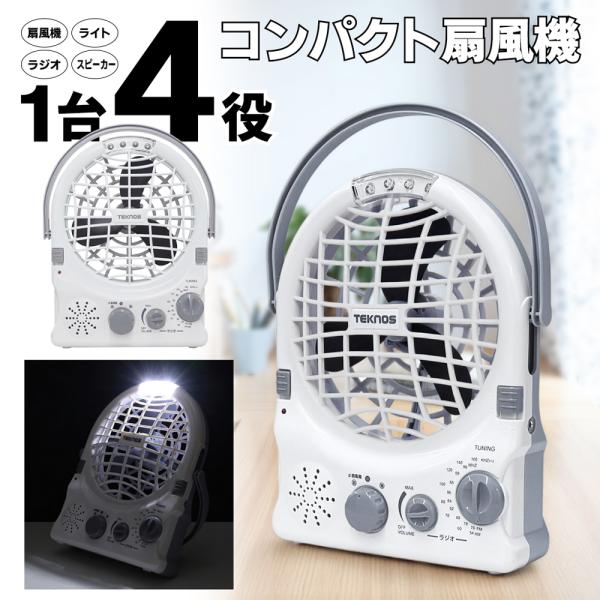 卓上扇風機 1台4役 3電源 小型 AM/FMラジオ ライト スピーカー搭載 防災グッズ 扇風機 コンパクト 多機能ファン デスク 音楽 情報 /60N◇ 多機能扇風機