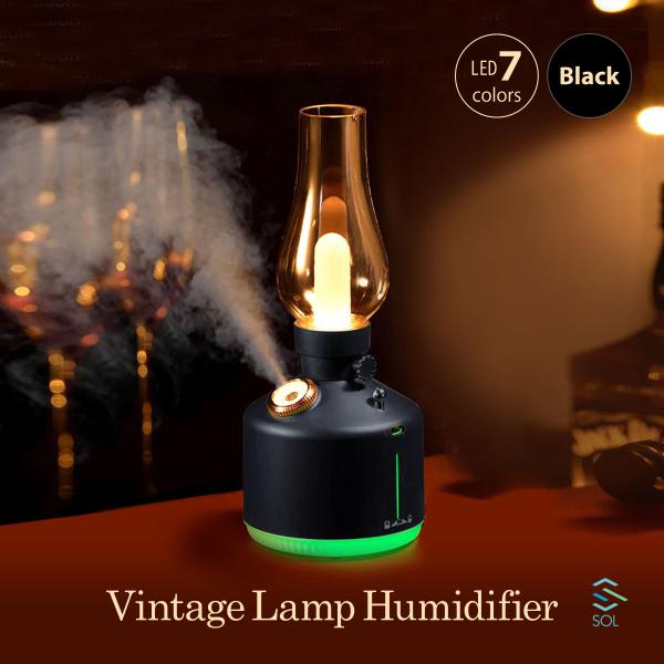 充電式加湿器 USB充電 ヴィンテージランプ アロマディフューザー エッセンシャルオイル コードレス LEDランプ 小型 ブラック 出荷締切18時