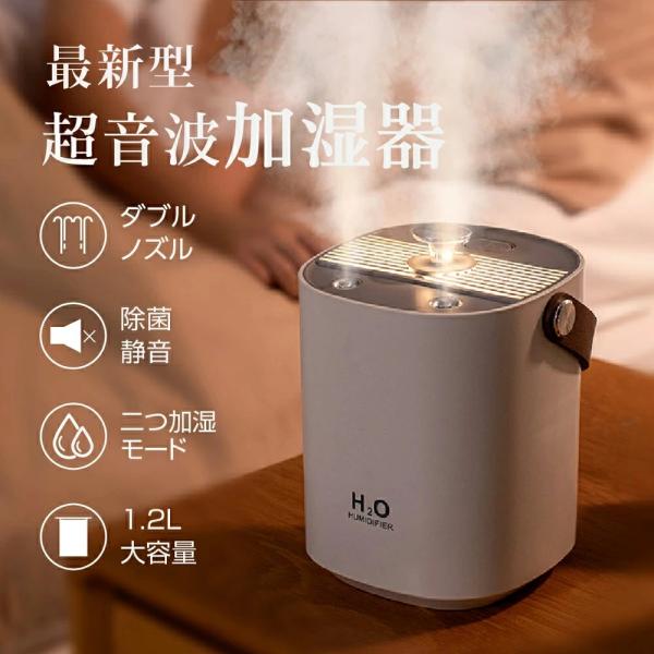 加湿器 ダブルノズル 卓上 空気清浄機 アロマ対応 超音波 除菌 LEDライト 空焚き防止 静音 2種類加湿モード 上部給水 type-c充電式 乾燥 花粉症対策 オフィス