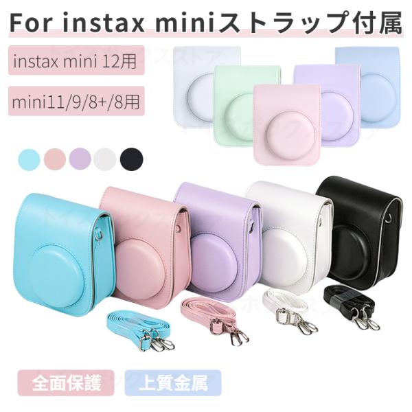 即納 富士FUJIFILMインスタントカメラチェキinstax mini 12 11/9/8+/mini 8用レザーケースカバー収納ポーチバッグ/ストラップ/ボディージャケット