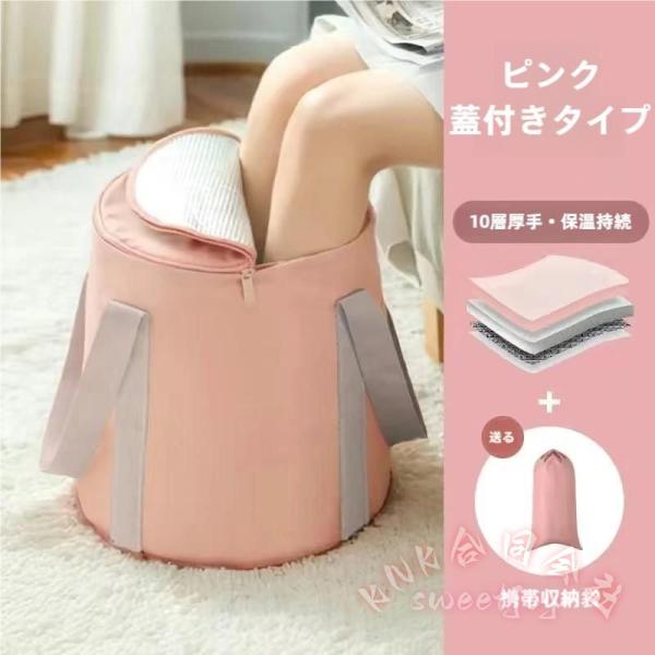 折りたたみ足湯バケツ 蓋付き巾着 深型保温 足湯バッグ KNK(株) 自立する大容量Lサイズ 持ち運び便利 ソフト素材 5色 省スペ収納