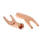 - Yラグ端子( Y型プラグ)は、純銅パイプを成形加工し、多くのスピーカーに対応しており、はんだ不要(無半田)の簡単接続で音の濁りを抑え、クリアな音質を可能にしました。スピーカーだけでなく、アンプの出力側にも使用できます。金メッキ(24K)は、高い導電性を持っているので、信号の損失を最小限に抑えます。これにより、高品質な音声信号の伝送が可能で酸化しにくいため、常に安定した接続を維持できます。ロジウムメッキは、非常に硬く、耐摩耗性が高いので、繰り返しの接続や取り外しによる摩耗に強いです。また、酸化に強く、長期間使用しても腐食しません。やや硬質な音質傾向を好む方におすすめです。銅メッキは、銅製で高い導電性を持ち、電気信号を非常に効率的に伝達します。また、自然で暖かい音質なので、オーディオファンに好まれることが多いです。【仕様】セット内容:Yラグ端子(スピーカープラグ)4個、止めねじ(イモネジ)2個 / バリエーション:金メッキ(24K)、ロジウムメッキ、銅メッキ / サイズ:全長42mm、外幅約13mm、内幅6〜8mm、厚み2mm、ケーブル接続用孔径φ4.5mm ※細いケーブルでの接続は、2〜3回折り重ねた銅線を本体下に折り曲げ、上からケーブル全体を止めねじ(イモネジ)2個で固定する方法がおすすめです。 Yラグ端子( Y型プラグ)は、純銅パイプを成形加工し、多くのスピーカーに対応しており、はんだ不要(無半田)の簡単接続で音の濁りを抑え、クリアな音質を可能にしました。スピーカーだけでなく、アンプの出力側にも使用できます。 金メッキ(24K)は、高い導電性を持っているので、信号の損失を最小限に抑えます。これにより、高品質な音声信号の伝送が可能で酸化しにくいため、常に安定した接続を維持できます。 ロジウムメッキは、非常に硬く、耐摩耗性が高いので、繰り返しの接続や取り外しによる摩耗に強いです。また、酸化に強く、長期間使用しても腐食しません。やや硬質な音質傾向を好む方におすすめです。 銅メッキは、銅製で高い導電性を持ち、電気信号を非常に効率的に伝達します。また、自然で暖かい音質なので、オーディオファンに好まれることが多いです。 【仕様】セット内容:Yラグ端子(スピーカープラグ)4個、止めねじ(イモネジ)2個 / バリエーション:金メッキ(24K)、ロジウムメッキ、銅メッキ / サイズ:全長42mm、外幅約13mm、内幅6〜8mm、厚み2mm、ケーブル接続用孔径φ4.5mm ※細いケーブルでの接続は、2〜3回折り重ねた銅線を本体下に折り曲げ、上からケーブル全体を止めねじ(イモネジ)2個で固定する方法がおすすめです。