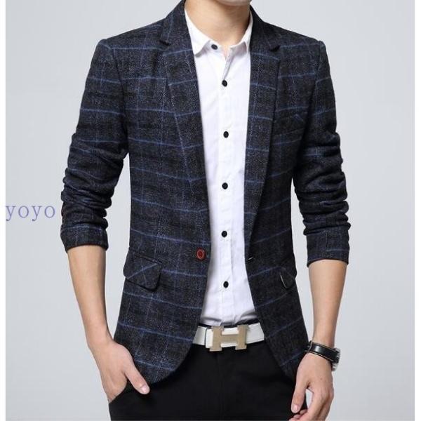【特価】紳士服 メンズ スーツジャケット チェク柄 カジュアルスーツ おしゃれ 裏柄 男性 1ボタン 大きいサイズ 3色 秋冬着 コート