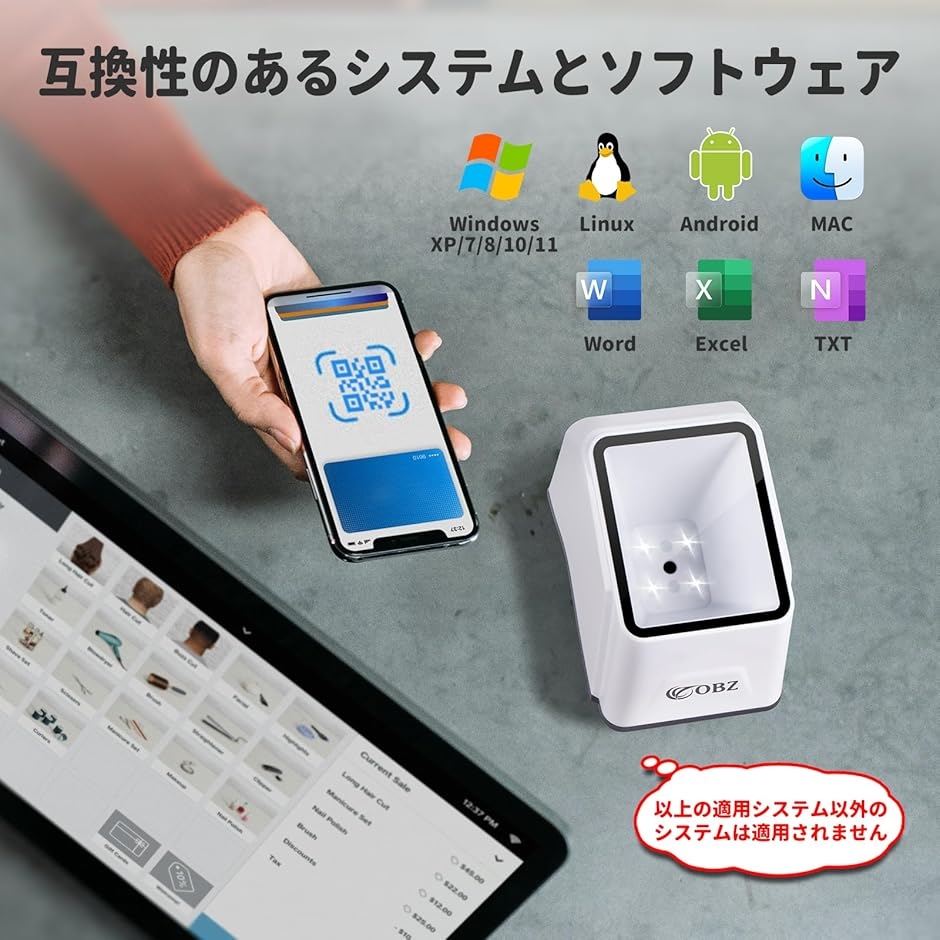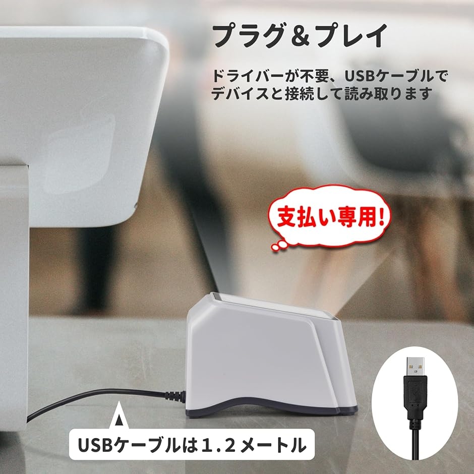 自動バーコードリーダー QR 自動検知 CMOSイメージ 無指向性360° 超速い卓上 USB PC MDM (PaymentBox NF3)
