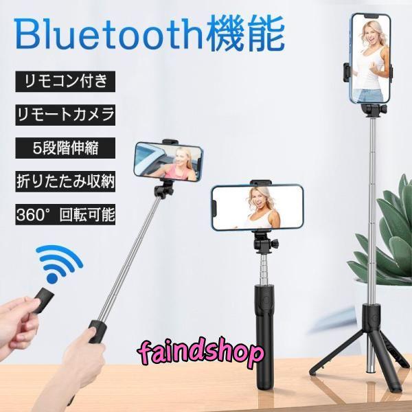 自撮り棒 セルカ棒 bluetooth 三脚付き スマホスタンド コンパクト iphone Android 遠隔撮影 折りたたみ 360度回転 軽量