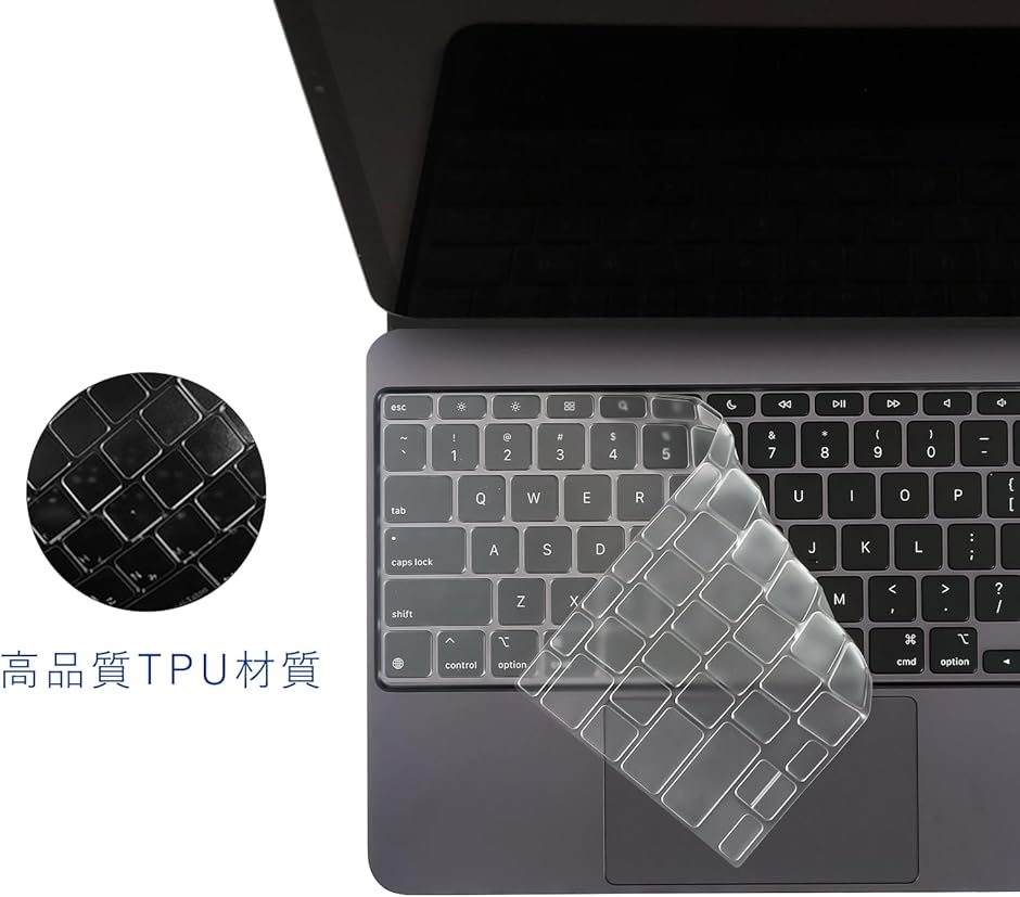 「超薄型」極めて透明に近い且つ薄い、僅かに0.18mm、気付かれないほど薄く、カバーを付けていても違和感のないタイピングを実現できます。