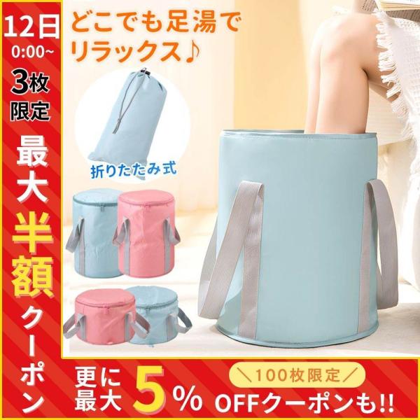 足湯 バケツ 折りたたみ フットバス 折り畳み 足湯バケツ 足湯用バケツ 保温 深型 冷めない 足浴 フットケア 自宅 収納袋付き コンパクト バスグッズ 蓋つき
