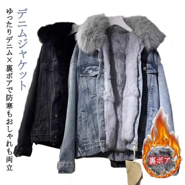 通学 通勤 体型カバー 長袖厚手 ボア襟 あったか アウター もこもこ 可愛い トレンド オーバーサイズ デニムジャケット 大きいサ