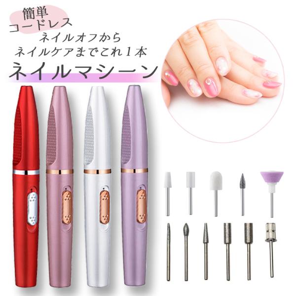 電動 ネイル マシン ジェルネイル オフ ネイルケア コードレス 研磨 USB 充電 爪みがき ファイリング 11ビット