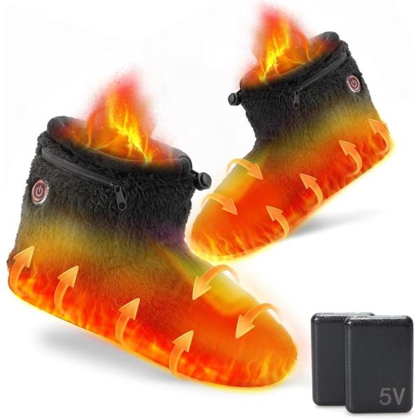 「6000mAhバッテリー2個付き」2025新版電気スリッパはDC5V/2.1A安定出力の6000mAhバッテリー2個付き、高温モードで約3.5h、中温モードで約5h、低温モードで約7.5h連続使用できます。