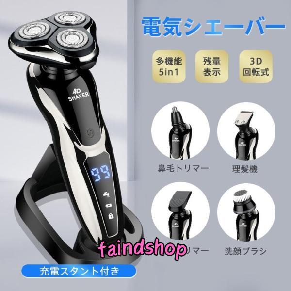 髭剃り 電気シェーバー カミソリ 5in1 メンズ 一台五役 多機能 回転式 3枚刃 LED電池残量表示 IPX7防水 USB充電 防水 出張 父の日 付き