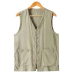 ベスト メンズ 麻 ジレ ベスト メンズ リネンベスト 中国風 綿麻 清涼 サマーベスト Vネック 前開き ビジネスベスト カジュアル スーツベスト コットンリネン 夏物 春夏 作業 ゴルフ