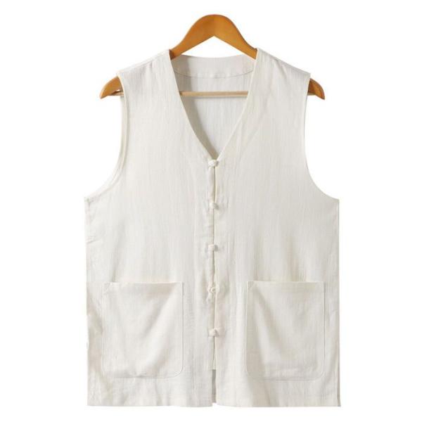 ベスト メンズ 麻 ジレ ベスト メンズ リネンベスト 中国風 綿麻 清涼 サマーベスト Vネック 前開き ビジネスベスト カジュアル スーツベスト コットンリネン 夏物 春夏 作業 ゴルフ クールビズ ボタン留め 父の日 ギフト