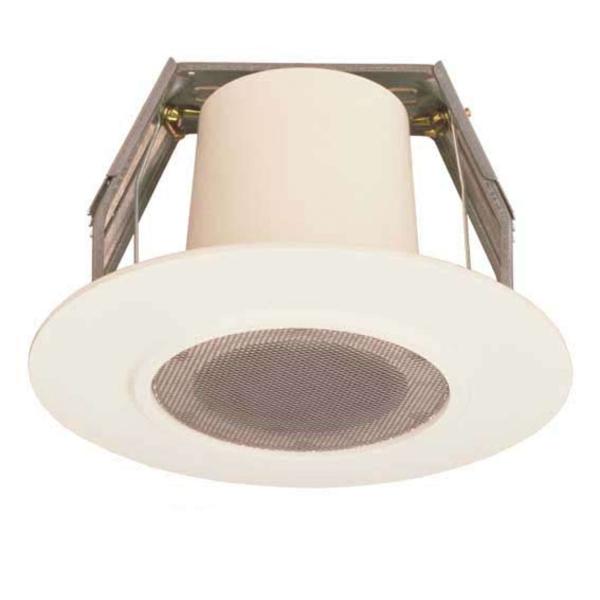 - 「仕様」 ・定格入力:3W ・定格インピーダンス:8Ω ・出力音圧レベル:88dB(1W,1m) ・周波数特性:180〜20,000Hz ・使用スピーカー:8cmコーン型(防滴型) ・使用温度範囲:−10℃〜+50℃ ・防水性能:IPX4相当 ・仕上:枠,ボディー:ABS樹脂 オフホワイト(マンセルN9.5近似色) :パンチングネット:ステンレス ・寸法:φ180×120(D)mm ・質量:600g ・取付穴寸法:φ150mm(最大50mmの厚さの天井材に対応することができます)高耐入力・小口径の防滴形フルレンジスピーカーユニットを採用し、完全密閉構造とした天井埋込型のスピーカーです。V字バネ方式のワンタッチ施工スピーカーで、工事の省力化が行えます。また、防水性能はIPX4を満足していますので多湿の環境(トイレ、洗面所、プールの更衣室等)に設置することができます。