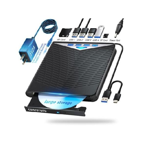 【並行輸入品】 conreruru Support for Blu-ray External Drive, Support for Blu-ray DVD/CD Player/Read/Write, USB 3.0 &/Type-C, Support for Blu-ray/DVD/