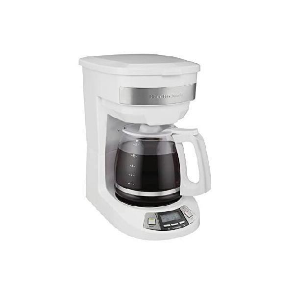 【並行輸入品】 Hamilton Beach 12 Cup Programmable Drip Coffee Maker with 3 Brew Options, Glass Carafe, Auto Pause and Pour, White (46294)