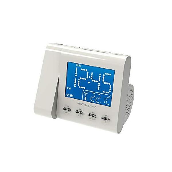 【並行輸入品】 Magnasonic Projection Alarm Clock with AM/FM Radio, Battery Backup, Auto Time Set, Dual Alarm, Nap/Sleep Timer, Indoor Temperature/