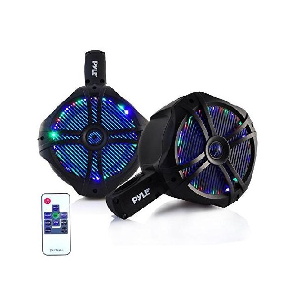 【並行輸入品】 Waterproof Marine Wakeboard Tower Speakers - 6.5 Dual Subwoofer Speaker Set and 1.0 Tweeters, LED Lights and 200 Watt Power - 2-way