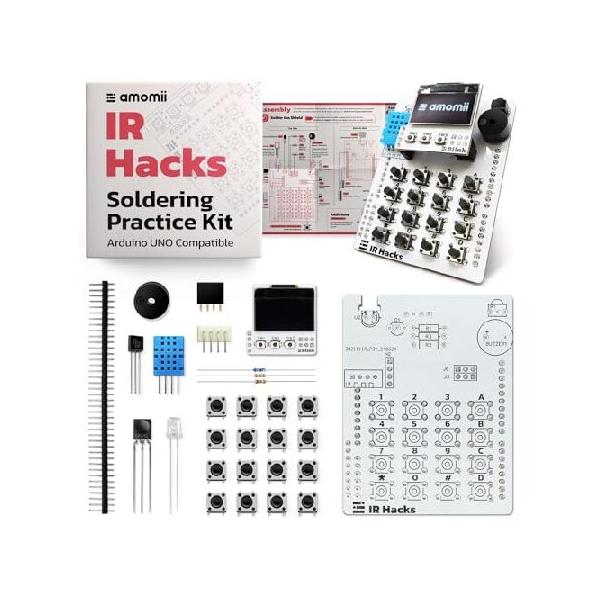 【並行輸入品】 amomii IRハック - Arduino UNO用はんだ付け練習キット - OLEDスクリーン、キーパッド、IRセンサー付きシールド -