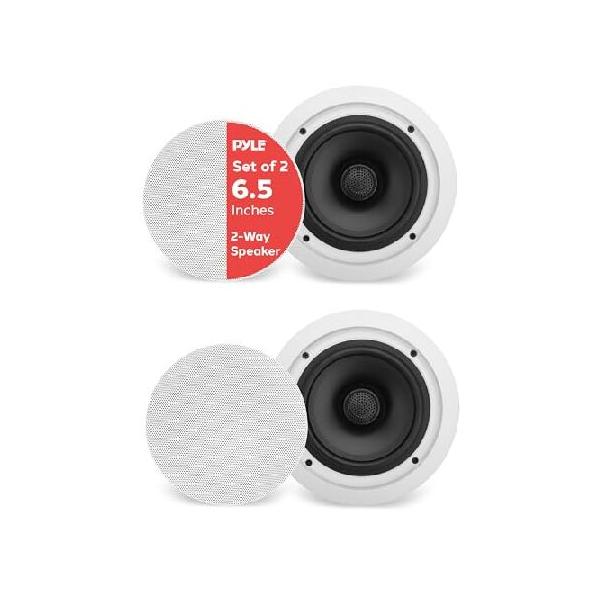 【並行輸入品】 Pyle パイル PDIC60T In-Wall/In-Ceiling Dual 6.5-Inch スピーカー システム, 70V Transformer, 2-Way, Flush Mount, White (ペア)
