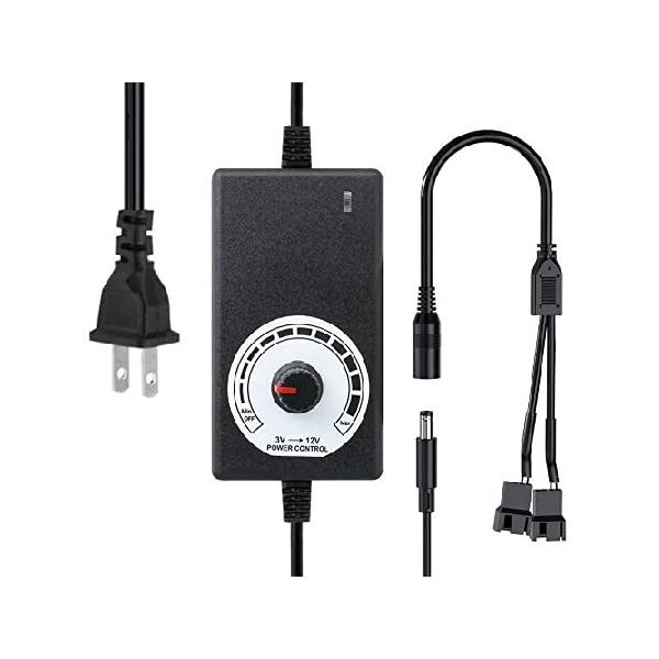 【並行輸入品】 12V ファン電源 PCファン速度コントローラー 100-240vAC - 3-12vDC 24W 調節可能なファン電源アダプター ファンスプリッターケーブル付き