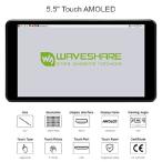 【並行輸入品】 waveshare 5.5インチ 静電容量式タッチAMOLEDディスプレイ Raspberry Pi 4B対応 保護ケース 1080×1920解像度 HDMI 強化ガラスパネル