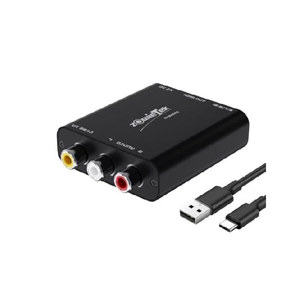【並行輸入品】 zowietek AV/RCA/CVBS - HDMIコンバーター ゲームに遅延なし プラグアンドプレイ アルミ落下耐性 4:3/16:9スイッチ Type-C電源 Wii N64 PS Xbox