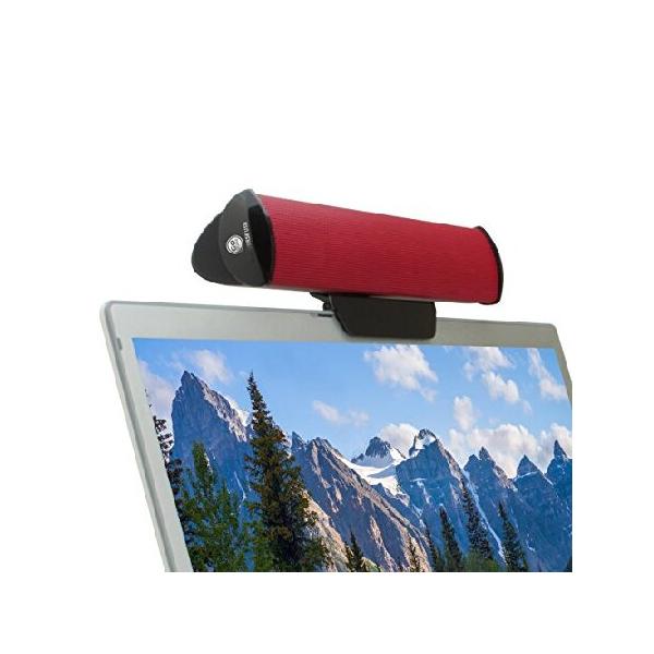 【並行輸入品】 Gogroove USB サウンドバーデザイン、クリップ付きノートパソコン用ポータブルスピーカー (レッド)- Works with HP Stream, Lenovo Yoga 900,