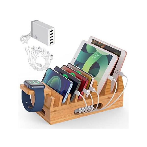【並行輸入品】 7スロット竹充電ステーション、USB充電器付き。 13.4 x 5.5 x 4.5 inch UL-PH005