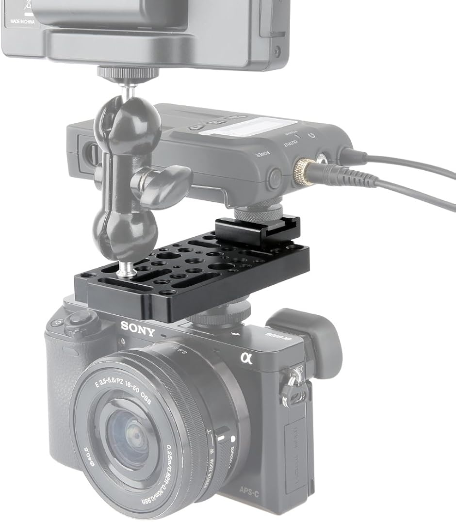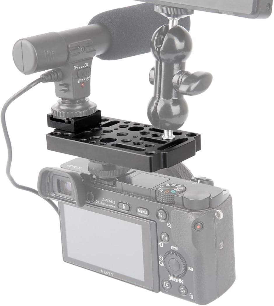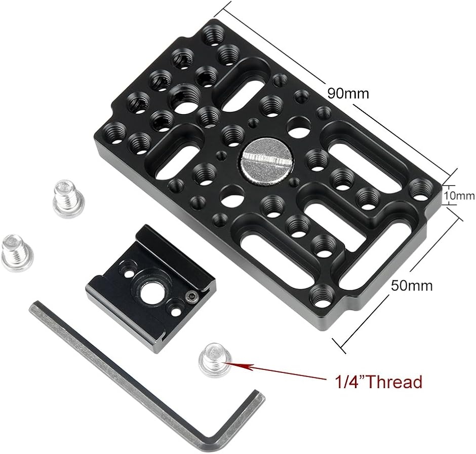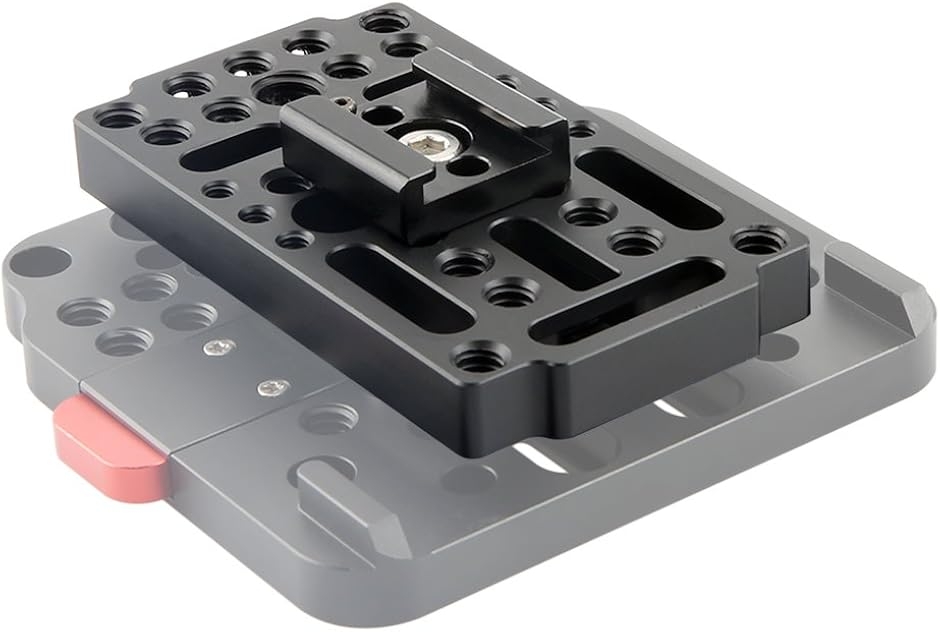 「広い範囲を使用ができる」連続プレートは1/4インチのネジ穴、3/8インチのネジ穴、M3ネジ穴 、M4ネジ穴、1/4インチのシンクホールが付いて、複数ネジ穴の設計なので、ロッド、 アーム、バッテリ、コンバータボックス等様々なカメラアクセサリーを装着可能です。