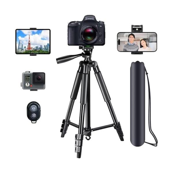 カメラ三脚 三脚 ビデオカメラ三脚 最大長158センチ 3WAY雲台 5段階伸縮Bluetoothリモコン付き三脚 スマートフォン スマホ 三脚