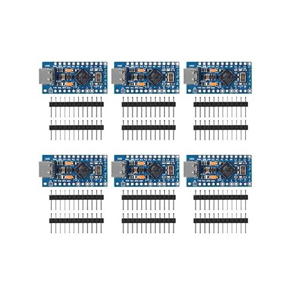 【並行輸入品】 AITRIP 6PCS Pro Micro ATmega32U4 5V 16MHz Type-C Development Module Board with 2 Row pin Header Compatible arduino Leonardo Replace ATm