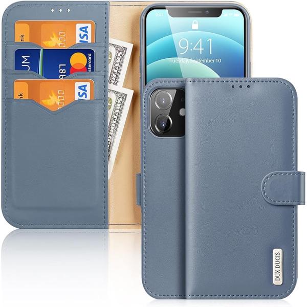 iPhoneケース 手帳型ケース PUレザー カード収納 スタンド機能 12 Mini MDM (ブルーグレー, iPhone 12 Mini)