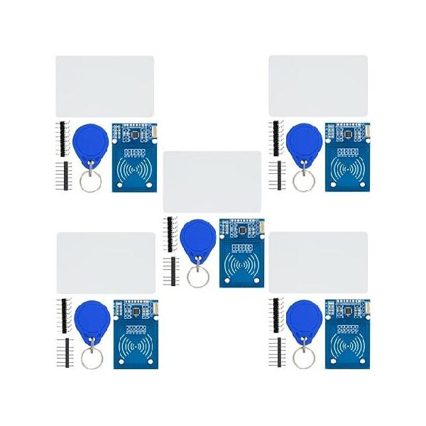 【並行輸入品】 WWZMDiB RFIDキット 5個 - MF RC522 RF ICカードセンサーモジュール + S50 ブランクカード + キーリング + オス - メス ジャンパーワイヤー Ardu