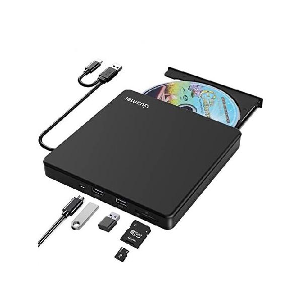 【並行輸入品】 Guamar 外付けCD/DVDドライブ ノートパソコン用 CDバーナー USB C ポータブルDVDプレーヤー CD ROM ディスクリーダー SD TFスロット付き
